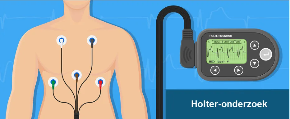 Bij een Holteronderzoek wordt uw hartritme gedurende 24 uur (of langer) continu geregistreerd met een klein draagbaar apparaatje. U krijgt enkele plakkers (elektroden) op de borst die verbonden zijn met een recorder die u bij u draagt.U kunt tijdens het onderzoek uw normale dagelijkse activiteiten uitvoeren. Dit onderzoek is vooral bedoeld om hartritmestoornissen op te sporen die niet altijd zichtbaar zijn op een standaard hartfilmpje.