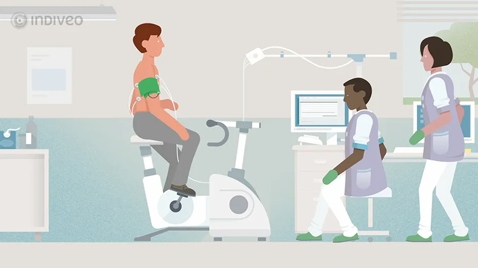 Bij een inspannings‑ECG onderzoeken we hoe uw hart functioneert tijdens lichamelijke inspanning. U fietst op een hometrainer of loopt op een loopband terwijl uw hartslag, bloeddruk en hartritme continu worden gemeten. De weerstand van de fiets of loopband wordt geleidelijk verhoogd, zodat uw hart steeds harder moet werken. Met dit onderzoek kan de cardioloog uw conditie beoordelen en of er tijdens inspanning aanwijzingen zijn voor zuurstoftekort van de hartspier, hartritmestoornissen. Het onderzoek duurt meestal 10–15 minuten en wordt uitgevoerd onder begeleiding van medisch personeel.